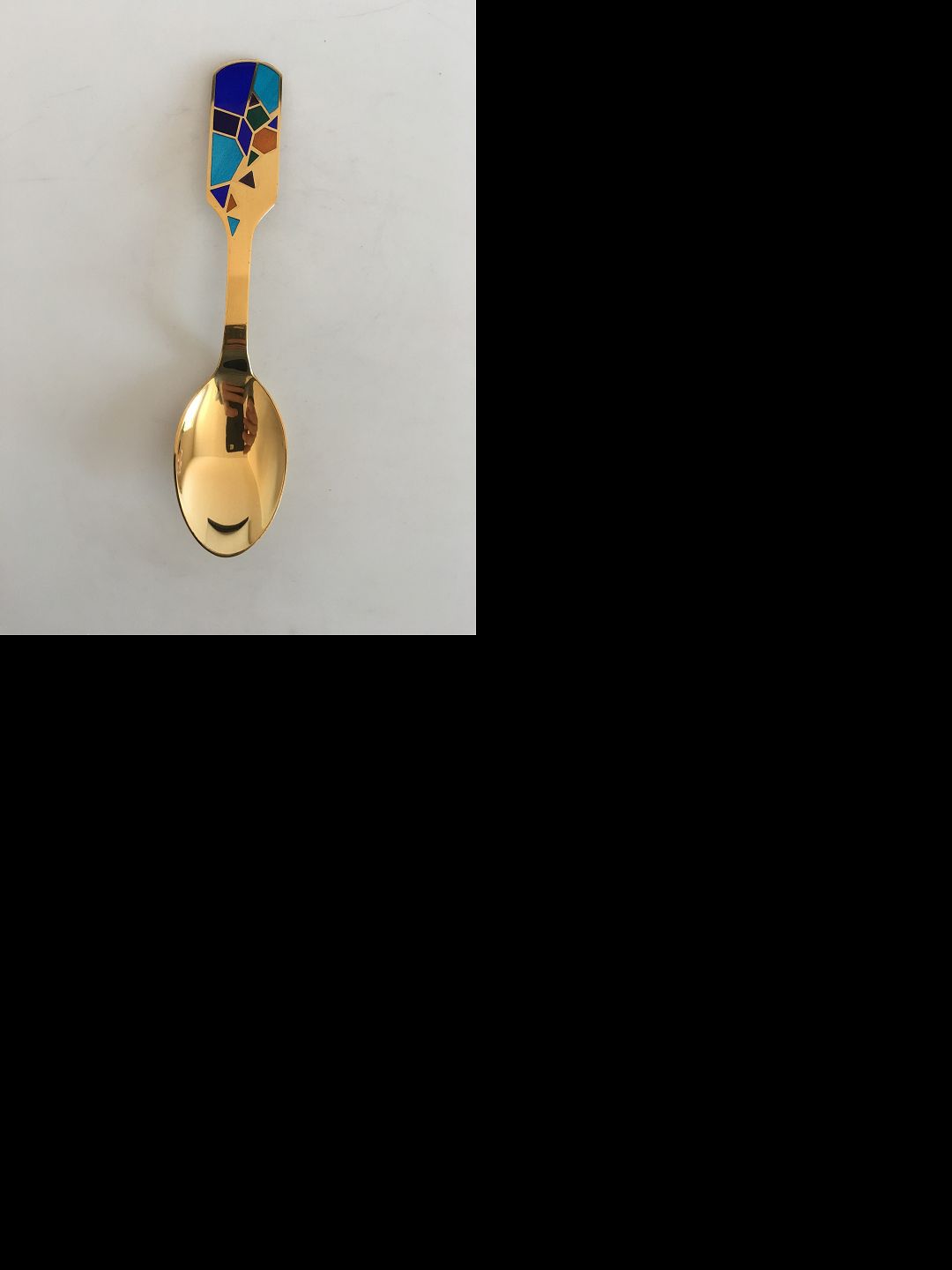 Anton Michelsen Christmas Spoon 1990 Gilded Sterling Silver and enamel.