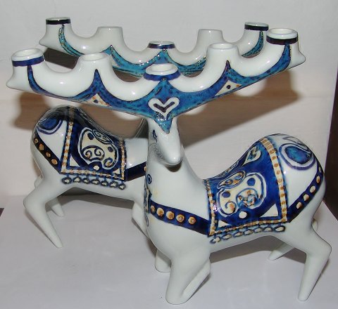 Royal Copenhagen Aluminia Fajance 5 armed candlabras in the form of reindeers. Both in perfect condition.