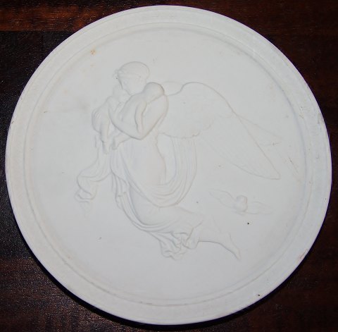 Royal Copenhagen Bisque Plate Night No 123. Copy from 1840 after Thorvaldsens original from Rom 1815. Measures 12,5cm.