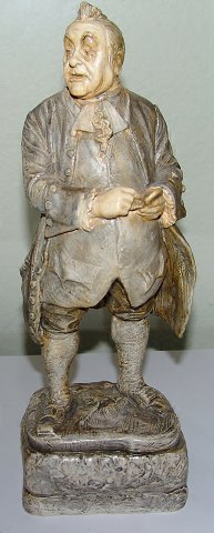Axel Locher Figur af Oluf Poulsen som Per Degn i Holbergs stykke. Måler 29cm høj. I meget fin stand, det eneste er et lille afslag på ærmet.