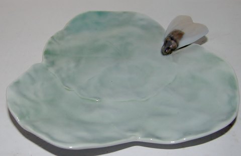 Royal Copenhagen Art Nouveau Lillypad dish with fly No 1/2. Measures 13,5cm