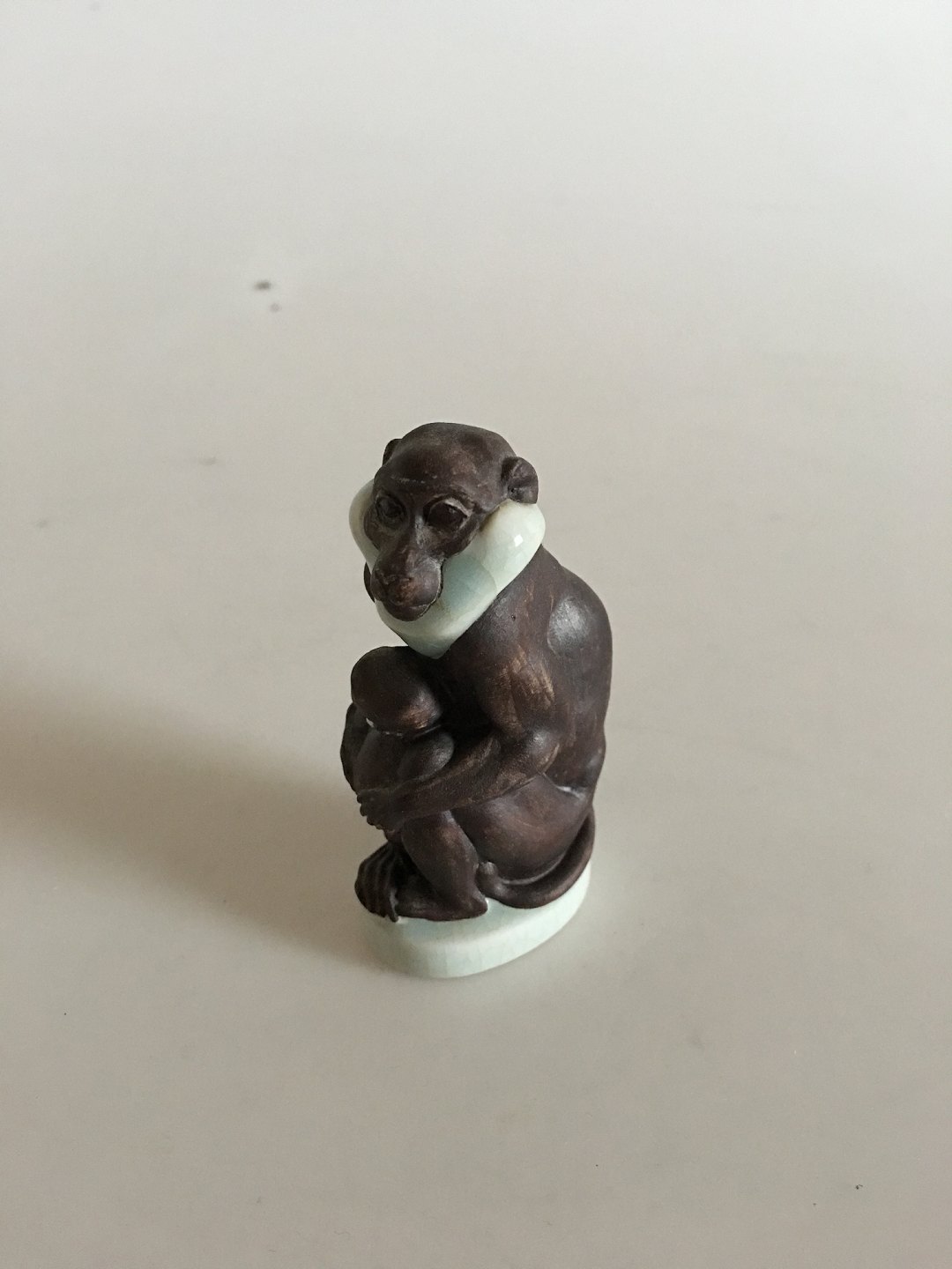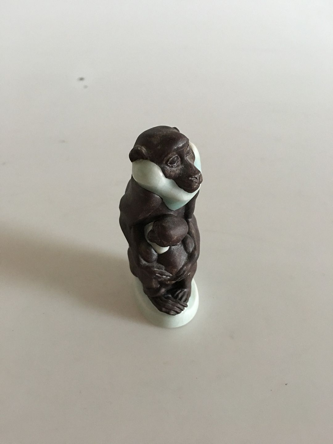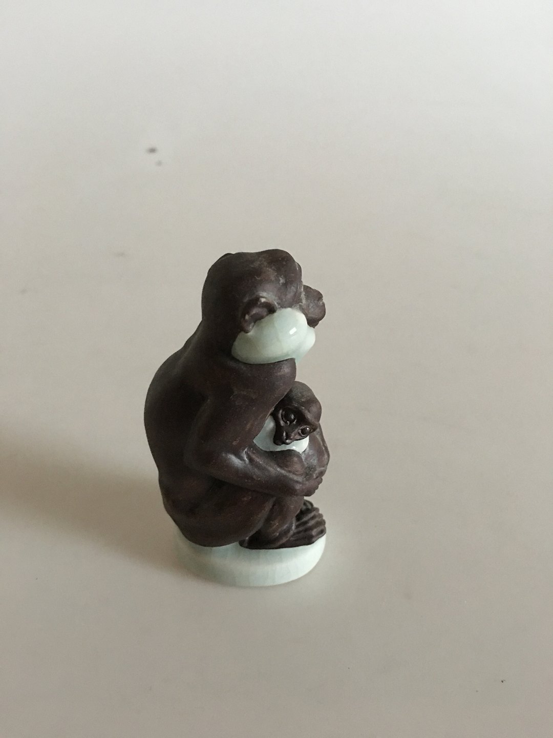 Royal Copenhagen Stentøj Jeanne Grut Abe figur og Abe figur med unge. Måler 7,5cm og 3,5cm.