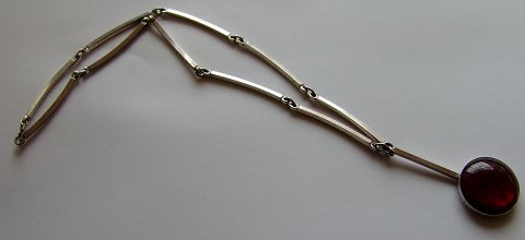 N.E. From Sterling Silver Necklace with pendent of Amber. The necklace measures 39,5cm and is in good condition.