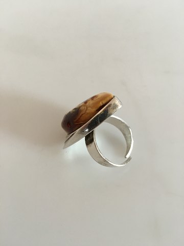 N.E. From Sterling Silver Ring with Amber. Is in good condition and has adjustible ring size. Measures 3,5cm. Size 60. Can be adjusted up and down. Weighs 16,3g / 0,57oz.