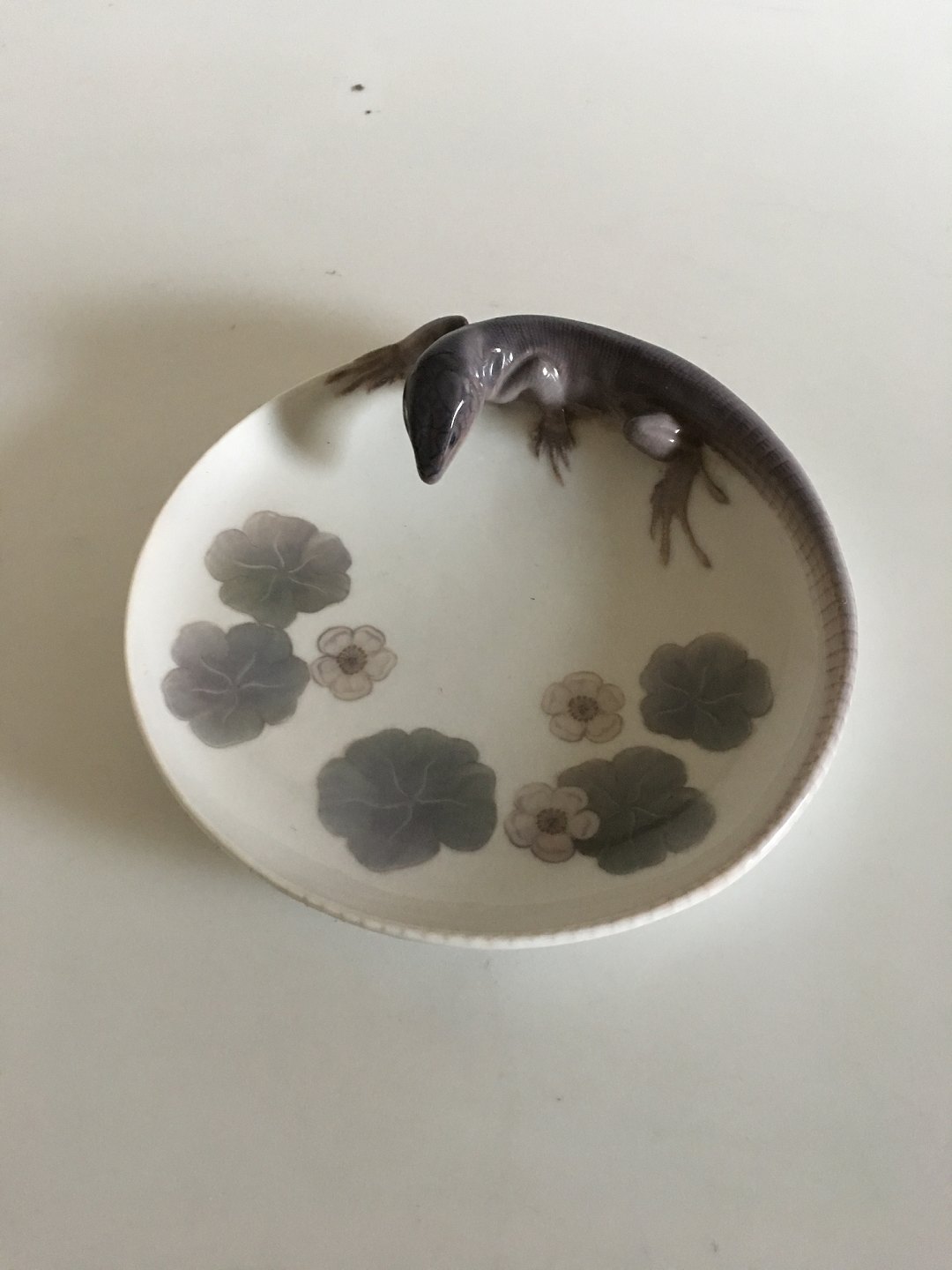 Royal Copenhagen Art Nouveau Large Lizzard Tray No 1100. Measures 20cm / 7 7/8" and is in good condition. But marked as a second.