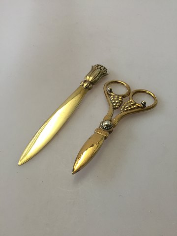 "Georg Jensen" Druesaks og Brevkniv udført i kobber af ansat hos Georg Jensen. Saks måler 13,4cm og kniv 15,6cm.