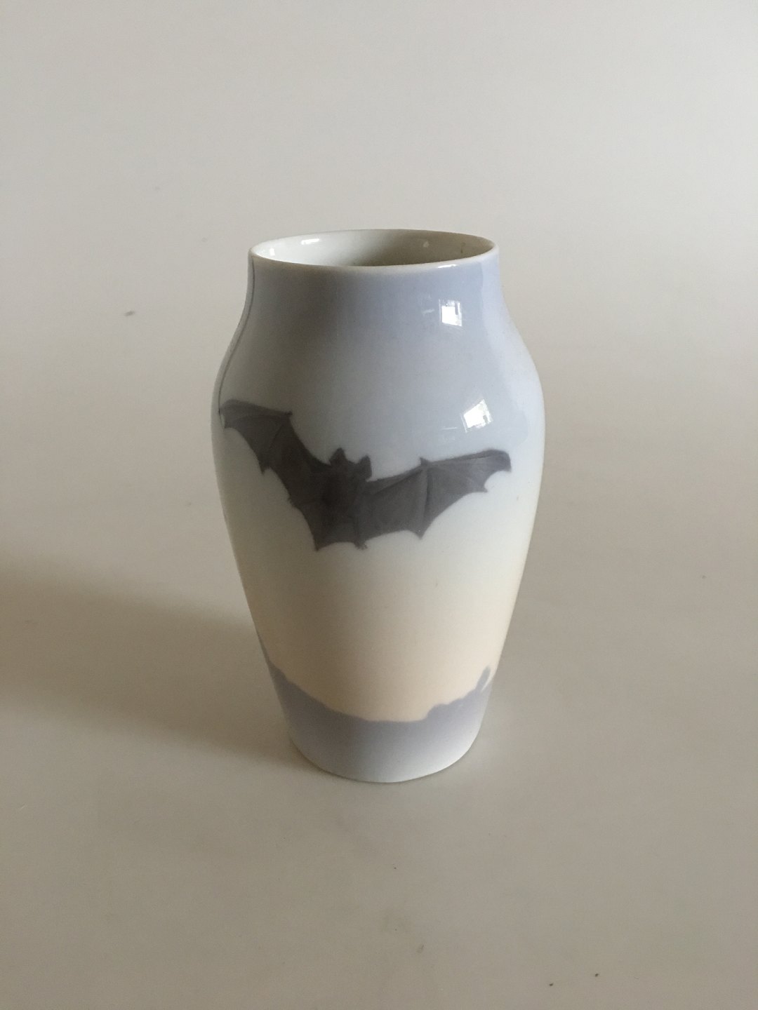 Royal Copenhagen Art Nouveau Flagermus Vase No 225/88B. Måler 13,5cm høj og er i hel og fin stand. Vi har den samme vase på vores side, men den har lidt glasur fejl og er billigere.