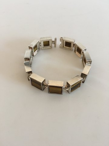 N.E. From Bracelet in Sterling Silver with Tigereye. Measures 18,5cm. weighs 45,5g / 1,60oz, and is in good condition.
