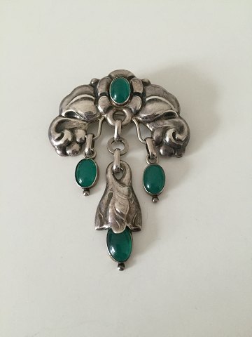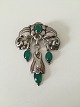 Dansk Skønvirke Broche med Grønne Sten af William Fuglede, København 1907-1937. Måler 7,5cm x 5,3cm. I god stand. Vejer 17g
