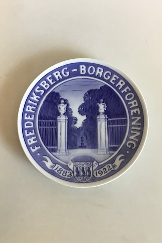 Royal Copenhagen Commemorative Plate RC-CM203 1922. Measures 20 cm / 7/8 in. and is in good condition. The entrance to Frederiksberg Gardens. Inscription: Frederiksberg Borgerforening 1882-1922. (The Civic Association of Frederiksberg) and the arms of Frederiksberg City (suburb of Copenhagen).