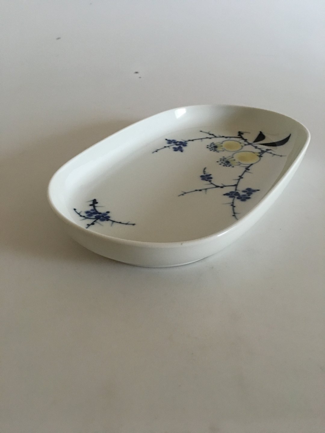 Royal Copenhagen Rimmon Johannes Hedegaard Assiet No 18422. Måler 21,8cm x 13cm og er i god brugt stand.