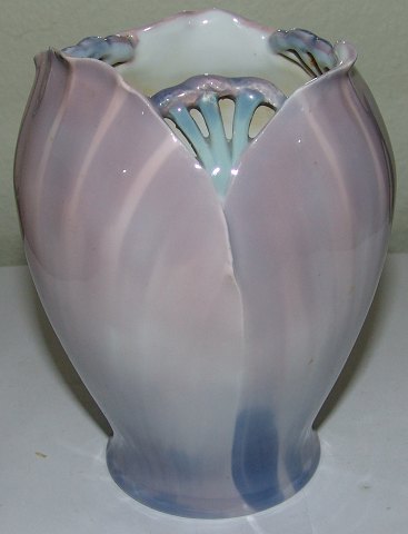 Rorstrand Unique Vase Pierced No 12896 AB. measures 14,5cm and is in good condition. Has a tiny chip on the bottom rim and as miniature on the top rim.