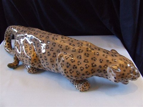 Royal Copenhagen Figur Kravlende Panter No 472. Måler 10,5cm x 47cm og er i god stand. Designet af Carl Frederik Liisberg.