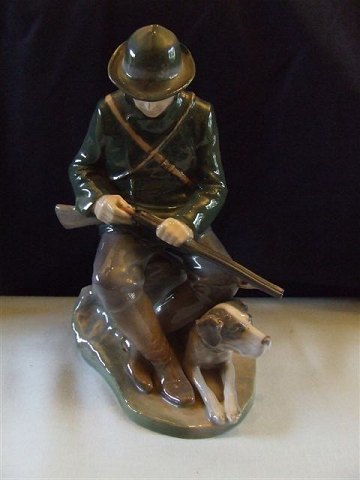 Royal Copenhagen Figur Jæger med Hund No 1087. Måler 20cm x 10cm og er i god stand. Designet af Christian Thomsen.