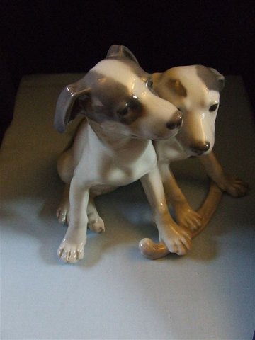 Royal Copenhagen Figur to Hound hvalpe med ben No 750. Designet af Erik Nielsen. Måler 23cm x 26cm og er i god stand.