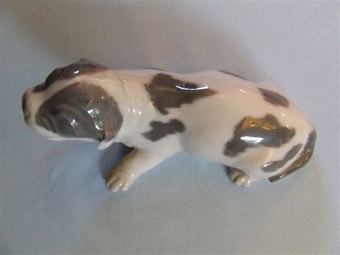 Royal Copenhagen Figur Bassett Hvalp No 1204 To varianter. Måler 7cm x 18cm og er i god stand. Designet af Peter Herold.