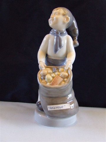 Royal Copenhagen Figur December Dreng med sæk No 4534. Måler 17cm og er i god stand. Designet af Hans Henrik Hansen.