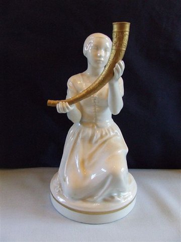 Royal Copenhagen Figur Pige med Guldhorn No 12242. Måler 22cm og er i god stand. Designet af Holger Christensen.