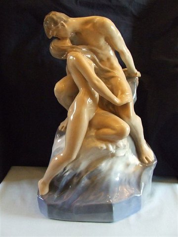 Royal Copenhagen Figur Bølge og Strand No 1132. Måler 47cm høj, er første sorting og designet af Theodor Lundberg.