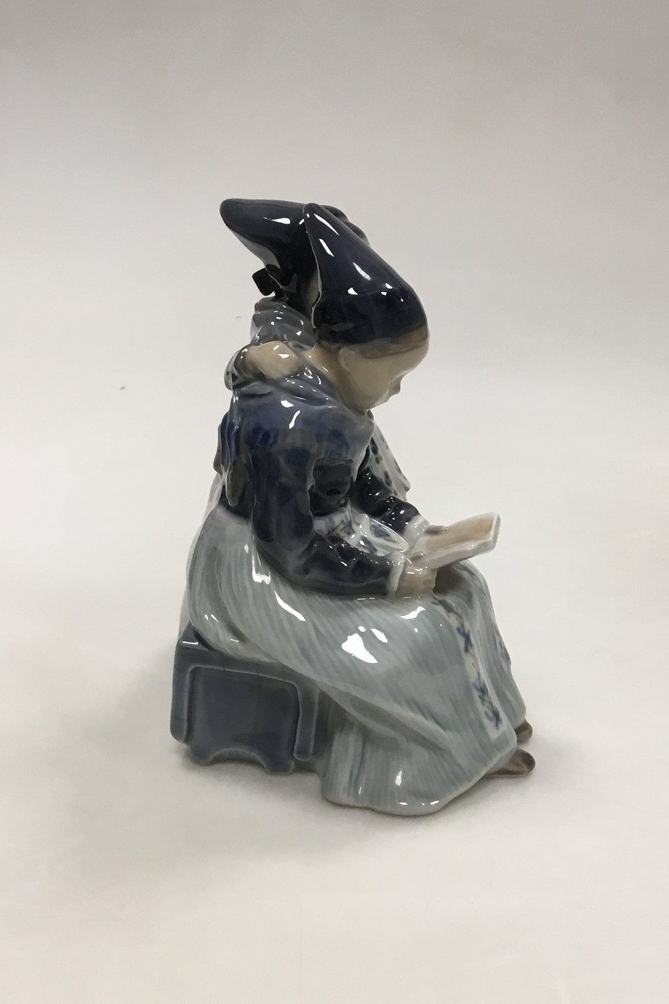 Royal Copenhagen Figur Læsende Amagerpiger No. 1395. Måler 17 cm (6 11/16 in.) og er i god stand. Designet af Lotte Benter