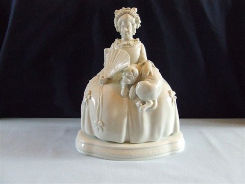 Royal Copenhagen Figur Dame med Hund No 1524. Designet af Axel Locher og har en brændingsfejl.