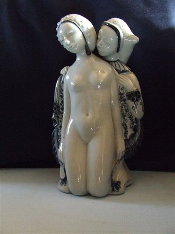 Royal Copenhagen Figur 2 Kinesiske Piger No 1760 4 af 4 varianter. Måler 19cm og er i god stand. Designet af Georg Thylstrup. Grå variant.