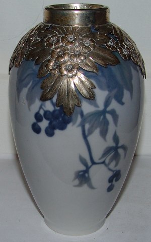 Royal Copenhagen Art Nouveau Vase med Anton Michelsen Sterling Sølv Montering fra 1914. Måler 18,5cm og er i god stand.