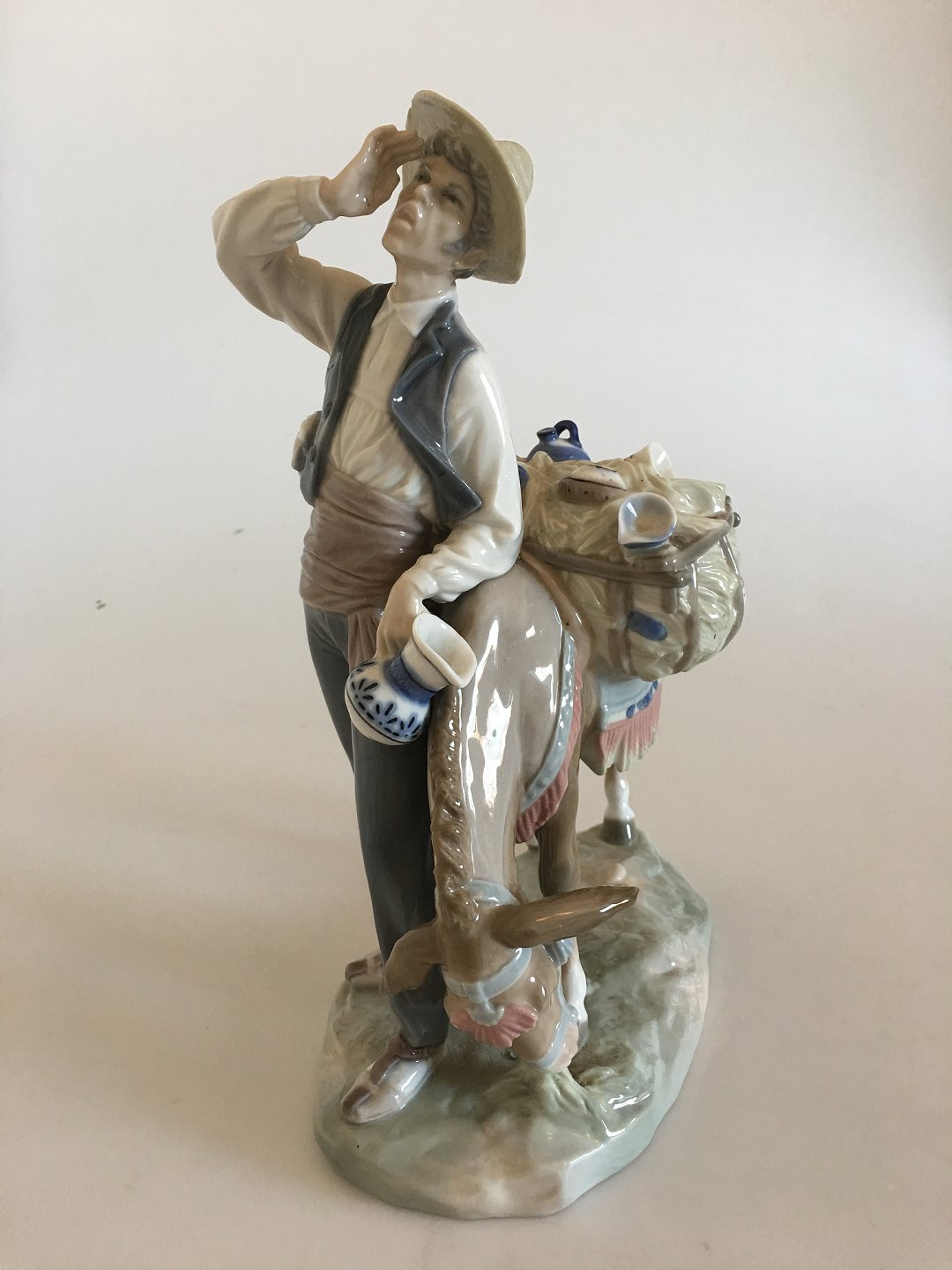 Stor Lladro Figur af Dreng/mand med Æsel. I perfekt stand.