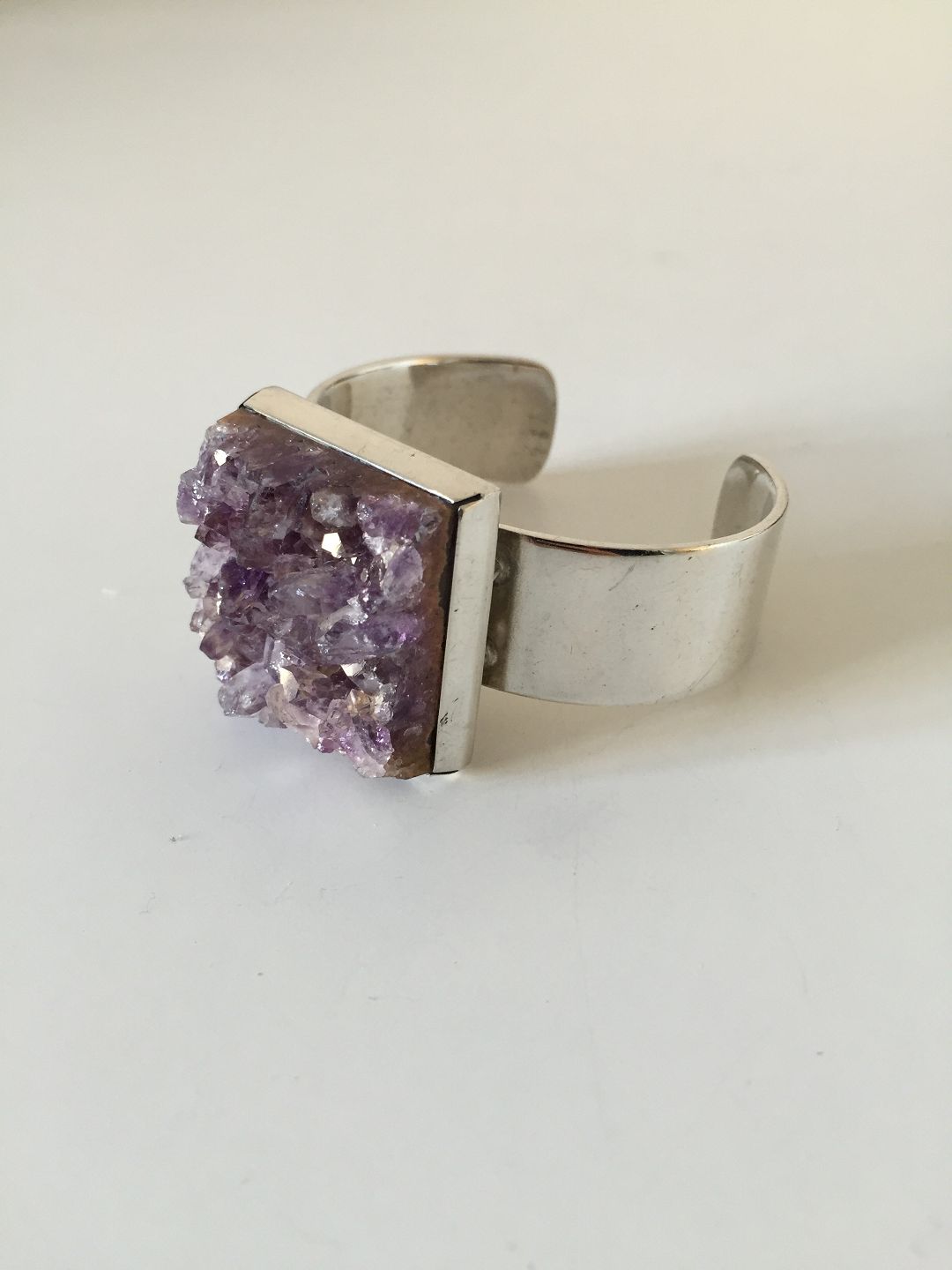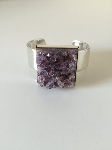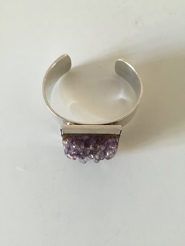 Bent Knudsen Sterling Silver Bracelet with Amethyst No 173. Measures 5.7 cm / 2 1/4". Can easily be expanded. In good condition. Weighs 76.6 g / 2.70 oz