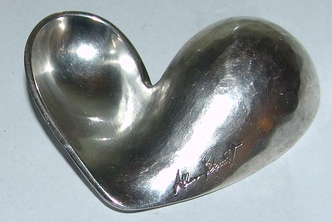 Allan Scharff Sterling Silver tasting spoon formed as a heart. Measures 9cm and is a unique work.