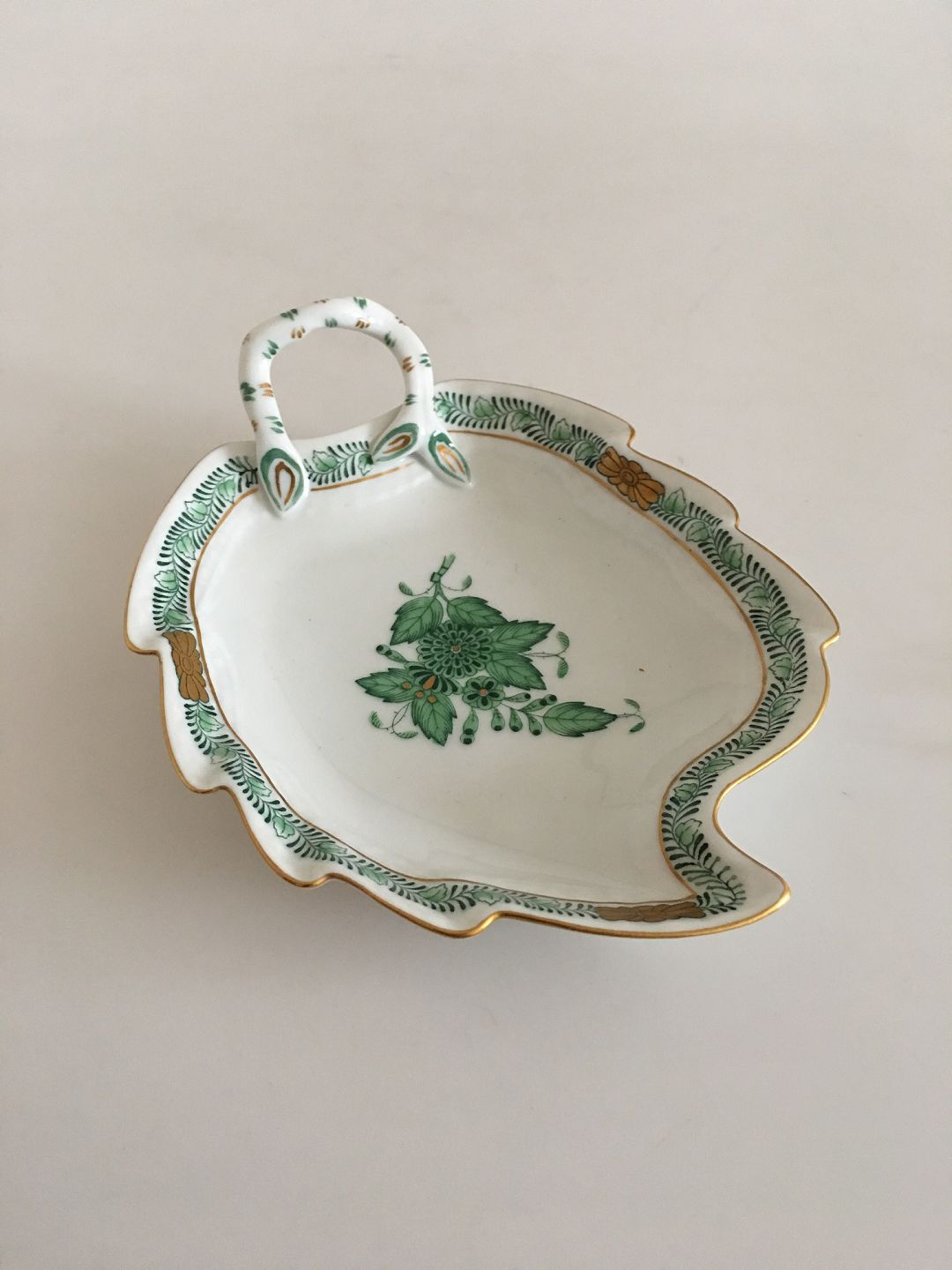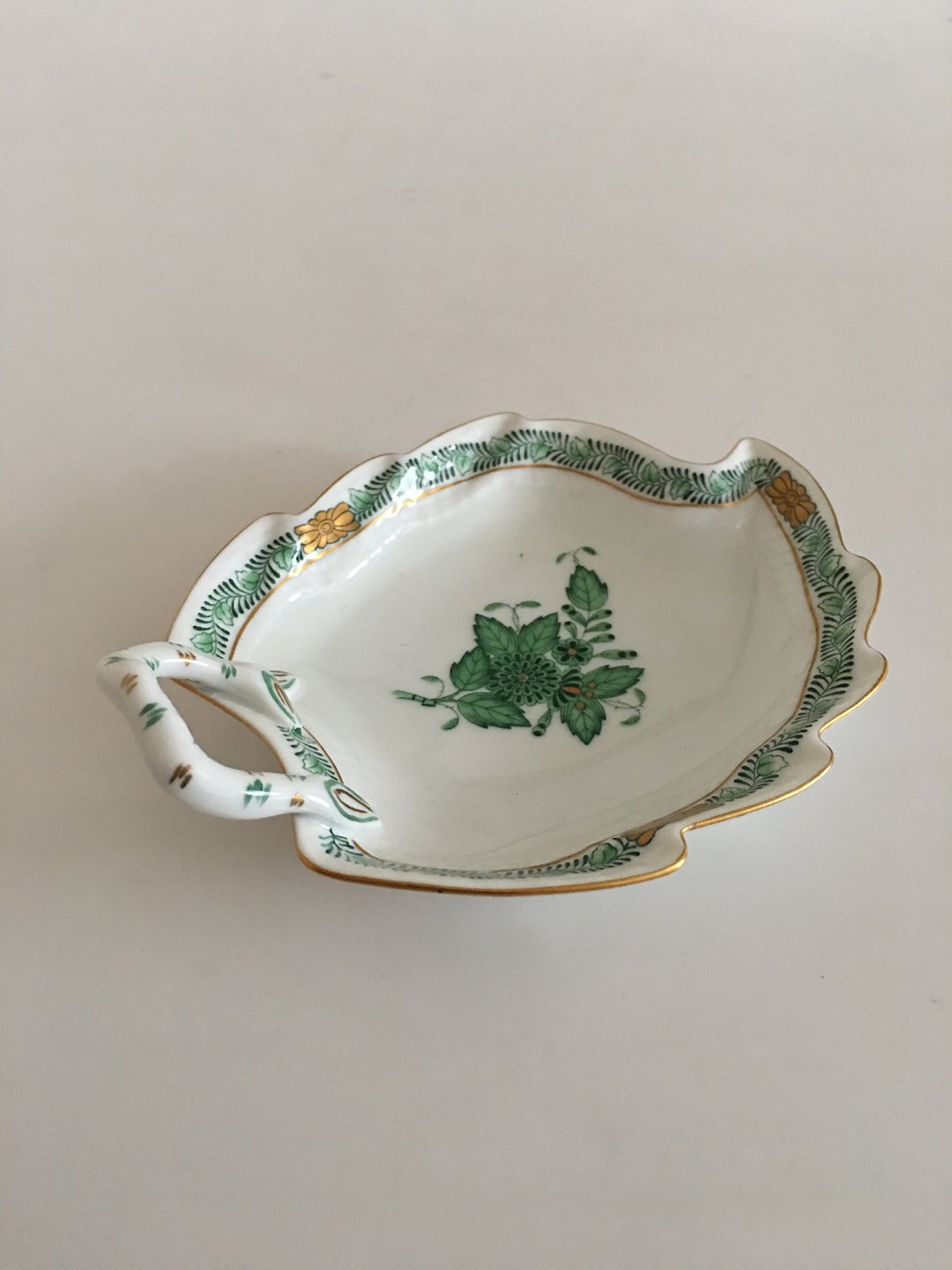Herend Hungary Chinese Bouquet Grenn Leaf shaped dish. Measures 14,7 cm and is in good condition.