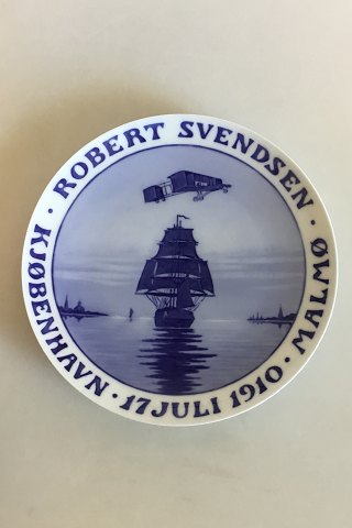 Aircraft over sailing ship in Copenhagen roads. Inscription: ROBERT SVENDSEN KJØBENHAVN 17. JULI 1910 MALMØ. Comm. by the aeronautical society to commemorate the flight from Copenhagen to Malmø. Designed by Christian Thomsen. 251 copies. 7.75”.