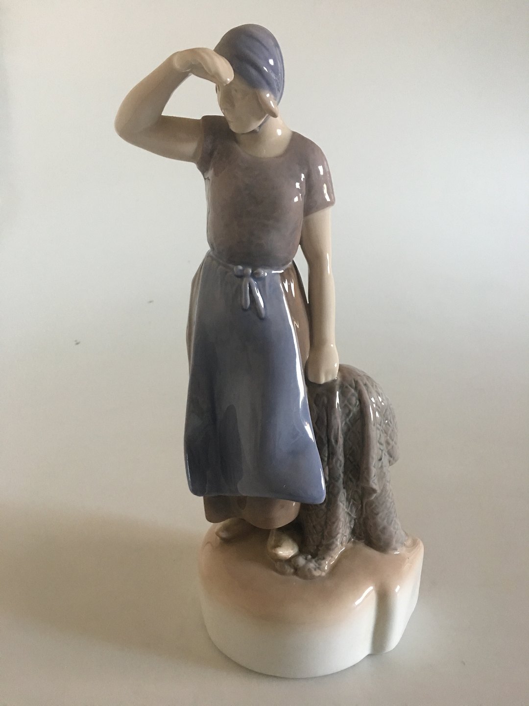Bing & Grøndahl Figur Dame med fiskenet No 2036. Designet af Axel Locher og måler 22,5 cm.