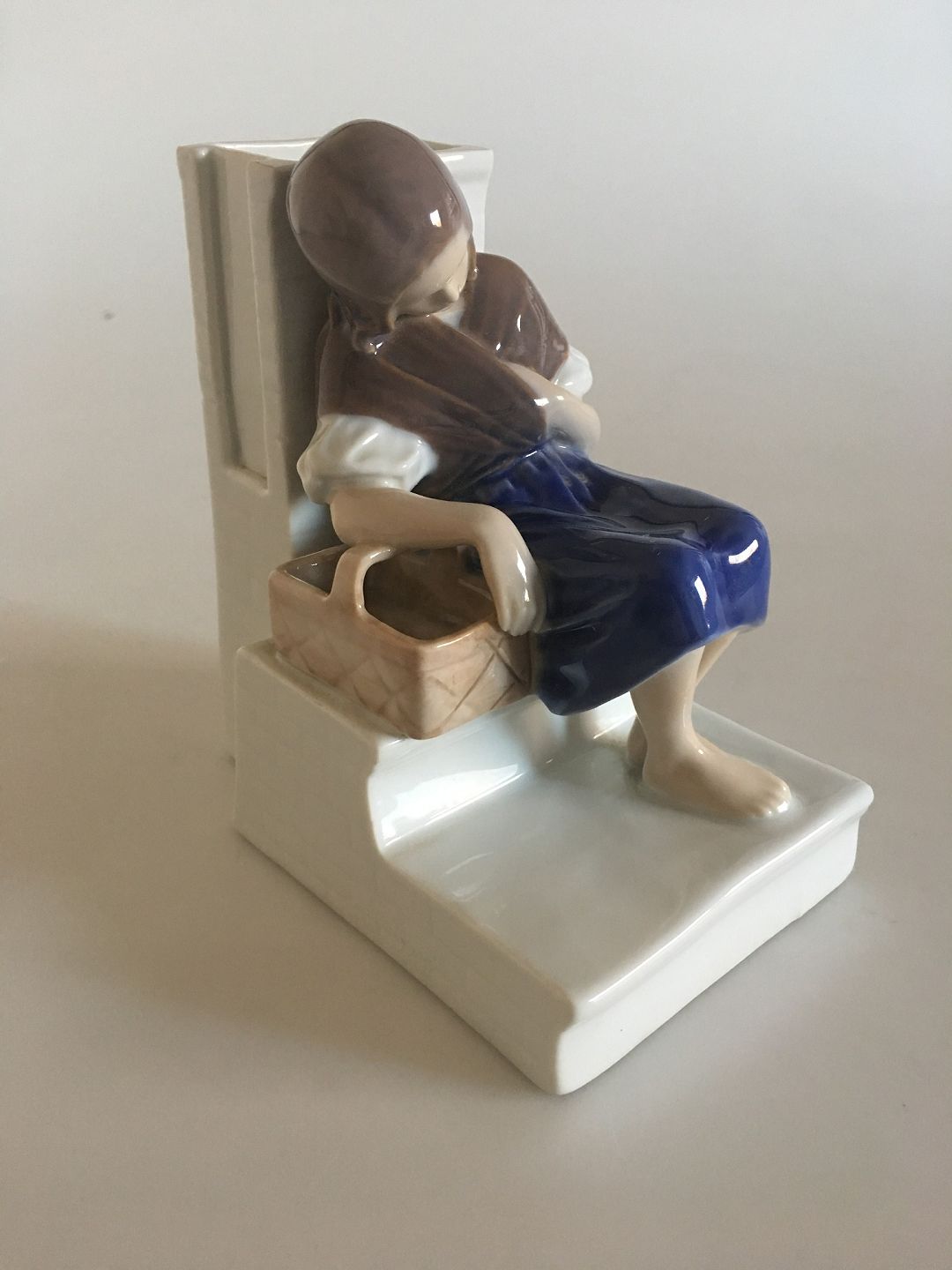 Bing og Grøndahl Figur - Den lille pige med Svovlstikkerne, H.C. Andersen No. 1655. Designet af Ingeborg Plockross Irminger. Måler 14 cm / 5.52 in. og er i god stand. Den hvide ryg er et rum til tændstikker, og langs siden plads til svovl.