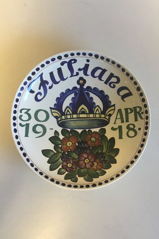 Aluminia Juliane Plate from 1918. Measures 24.5 cm / 9 41/64 in. and is in good condition. Small cracks in the glaze can be found. Like on most items made in Faience.