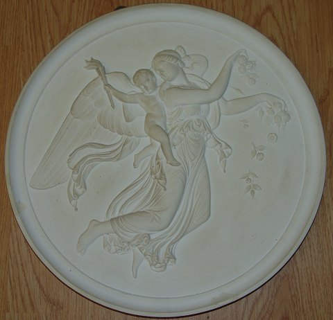 Royal Copenhagen Bisque Plates Night and Day No 86 and No 123. Copy from 1840 after Thorvaldsens original from Rom 1815. Measures 35,5cm. The Day has 2 rim repairs. The night is perfect.