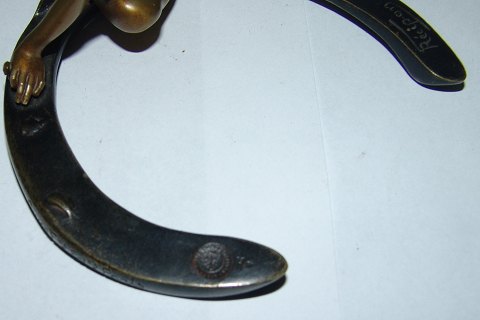Art Nouveau Nøgen dame på hestesko i bronze af Georges Recipon. Måler 15,5cm x 11cm og er i god stand.