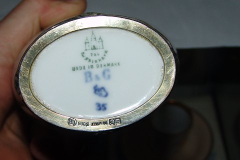 Bing & Grondahl Unique vase by Erik Magnussen with silver mounting from 1935 No 35. Measures 15,5cm.