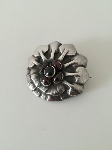 Georg Jensen Early Brooch with stones from 1904-1908. Measures 4,2cm (1 21/32") and is in good condition. But one stone with crack. Weighs 14g / 0,50oz.