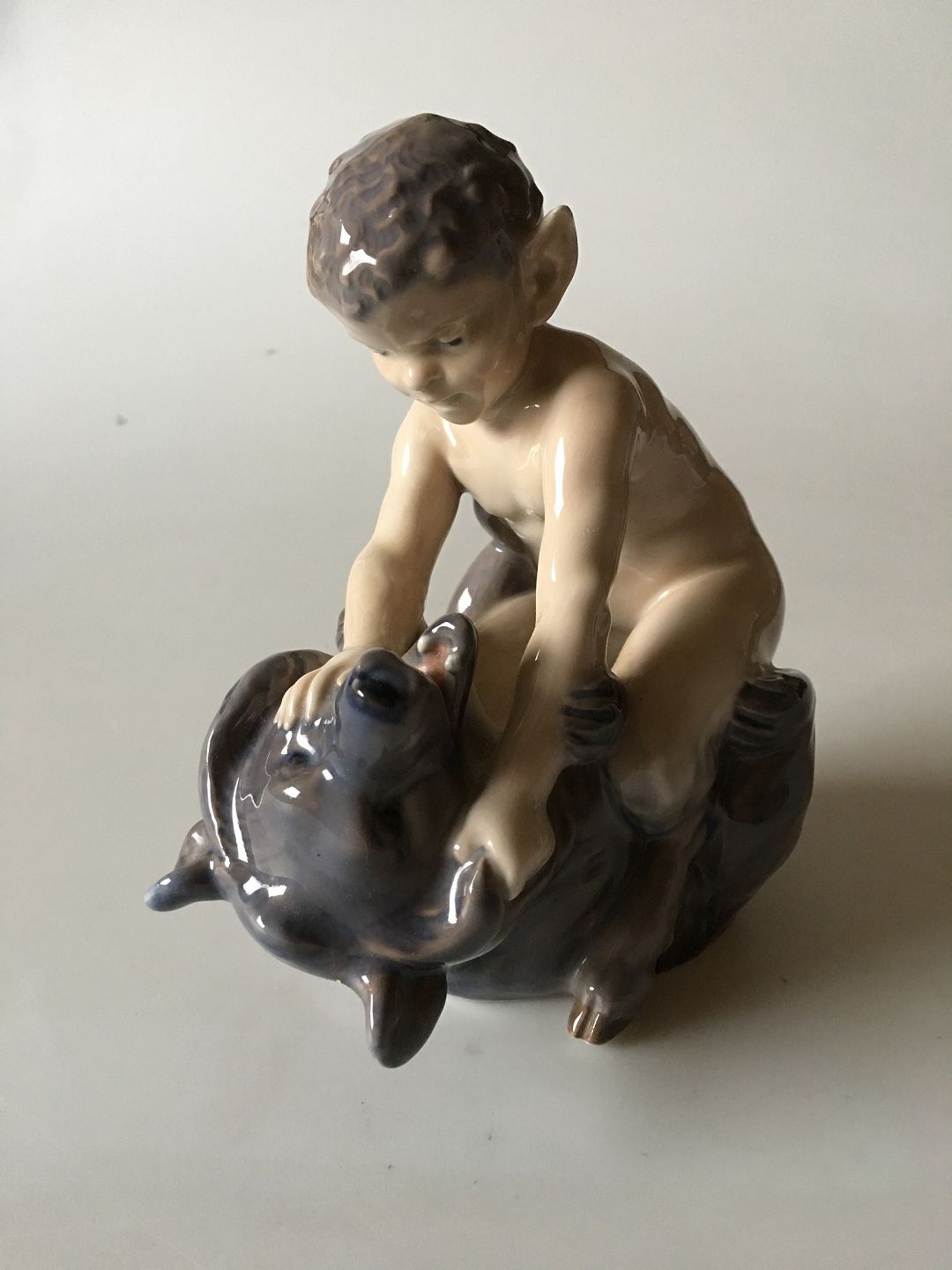 Royal Copenhagen Figur Faun med Bjørn No. 648. Måler 16 cm ( 6 19/64 in. ) og er i god stand.