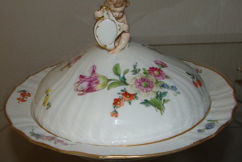 Royal Copenhagen Saksisk Blomst Stort Rundt lågfad med putti. I god stand, men har et par små afslag, se billeder.