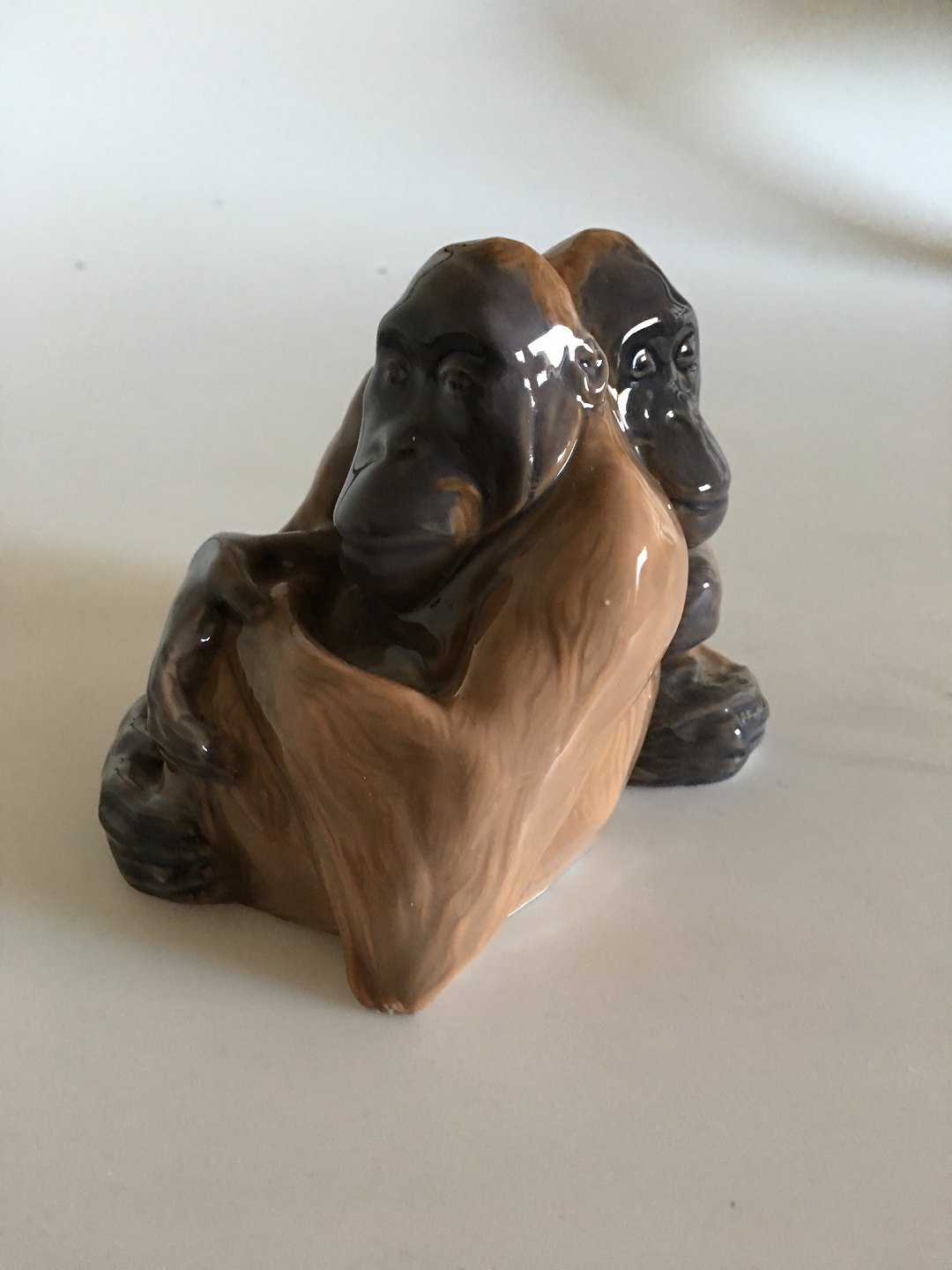 Royal Copenhagen Figur par orangutanger No 721. Måler 10 x 14cm og er i god stand. Designed by Knud Kyhn in 1906.