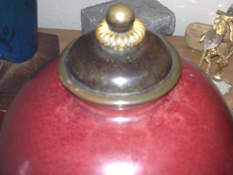 Royal Copenhagen Carl Halier/Knud Andersen Stoneware Vase with Bronze lid. Measures 26,5cm and is in good condition.