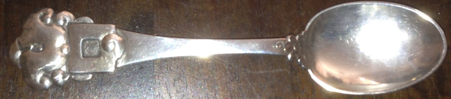 Thorvald Bindesbøll Silver Spoon from Holger Kysters Smithy. Measures 18,5cm and is in good condition.