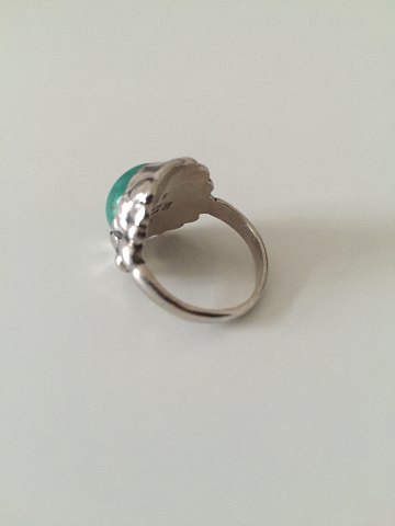 Georg Jensen Silver Ring with Green Agat No 11A. From 1933-1944 and is in good condition. Ring Size 56 / 7 1/2. Weighs 5.3 g / 0.19 oz.