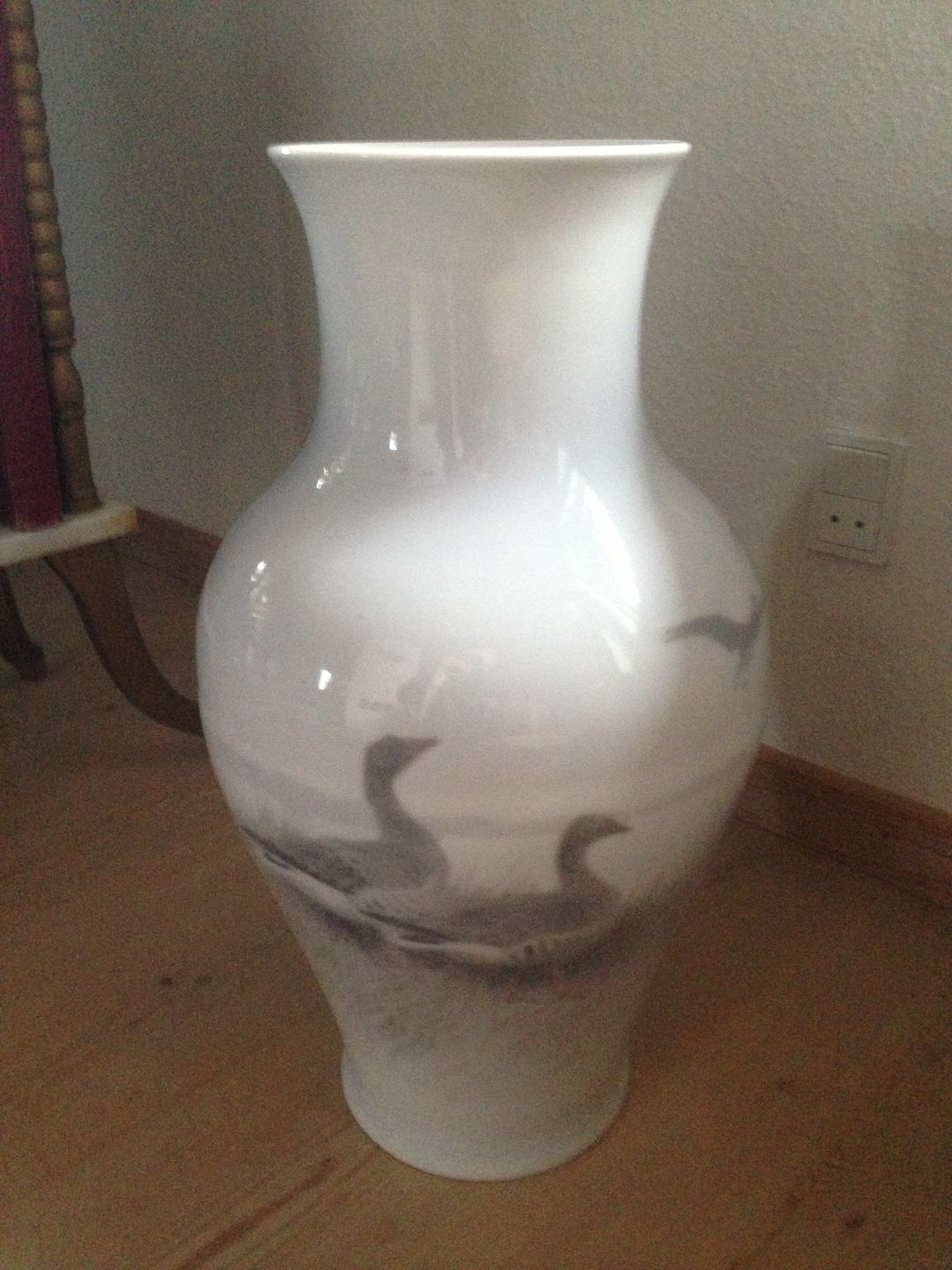 Royal Copenhagn Art Nouveau Unique Vase by Vilhelm Theodor Fischer with Geese from 1927. Måler 53cm høj og er i god stand, udover et stod på bunden.