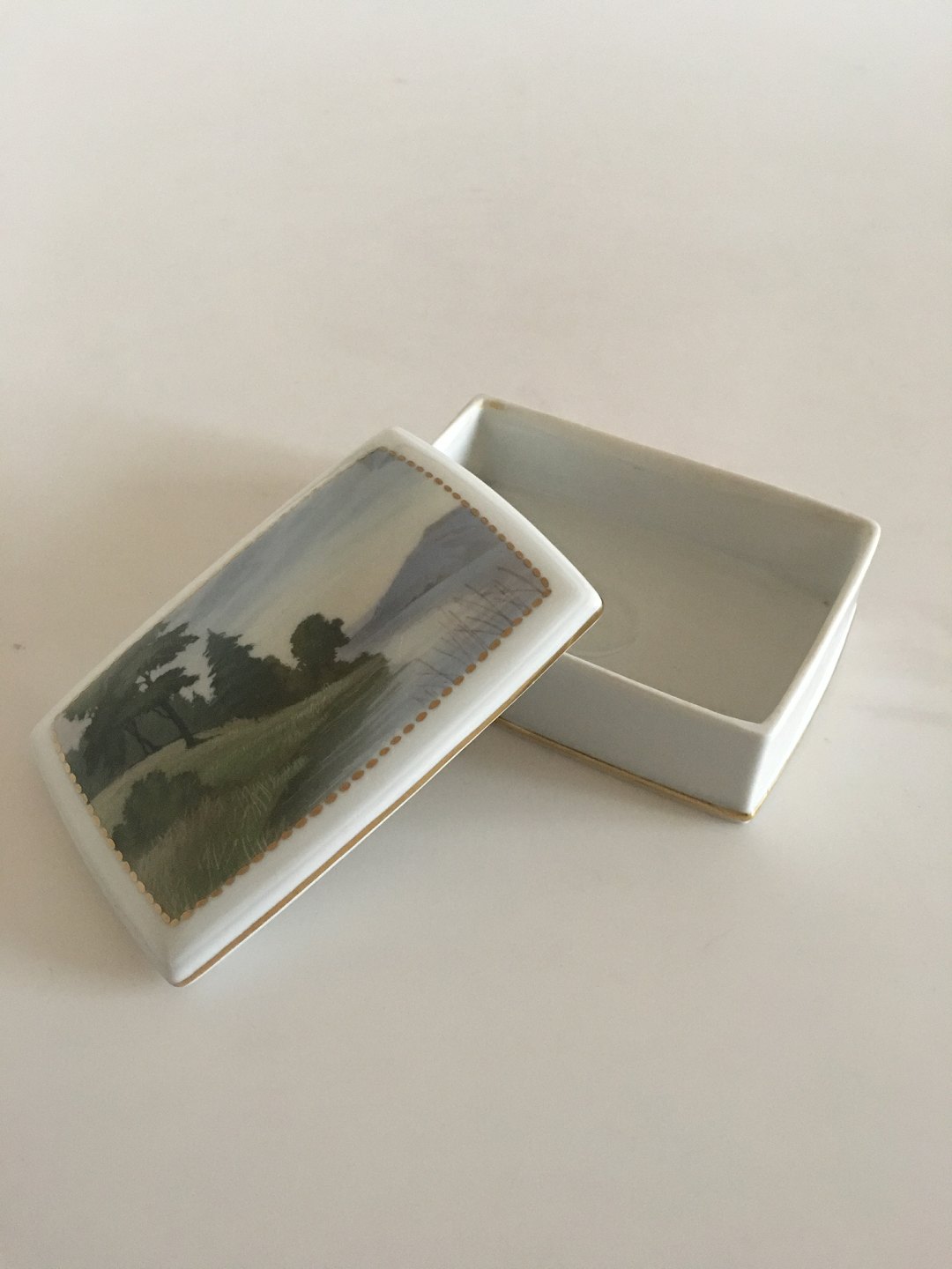 Rosenthal Art Nouveau lågskål med landskabs motiv. Måler 13,5cm x 9,8cm og er i perfekt stand.