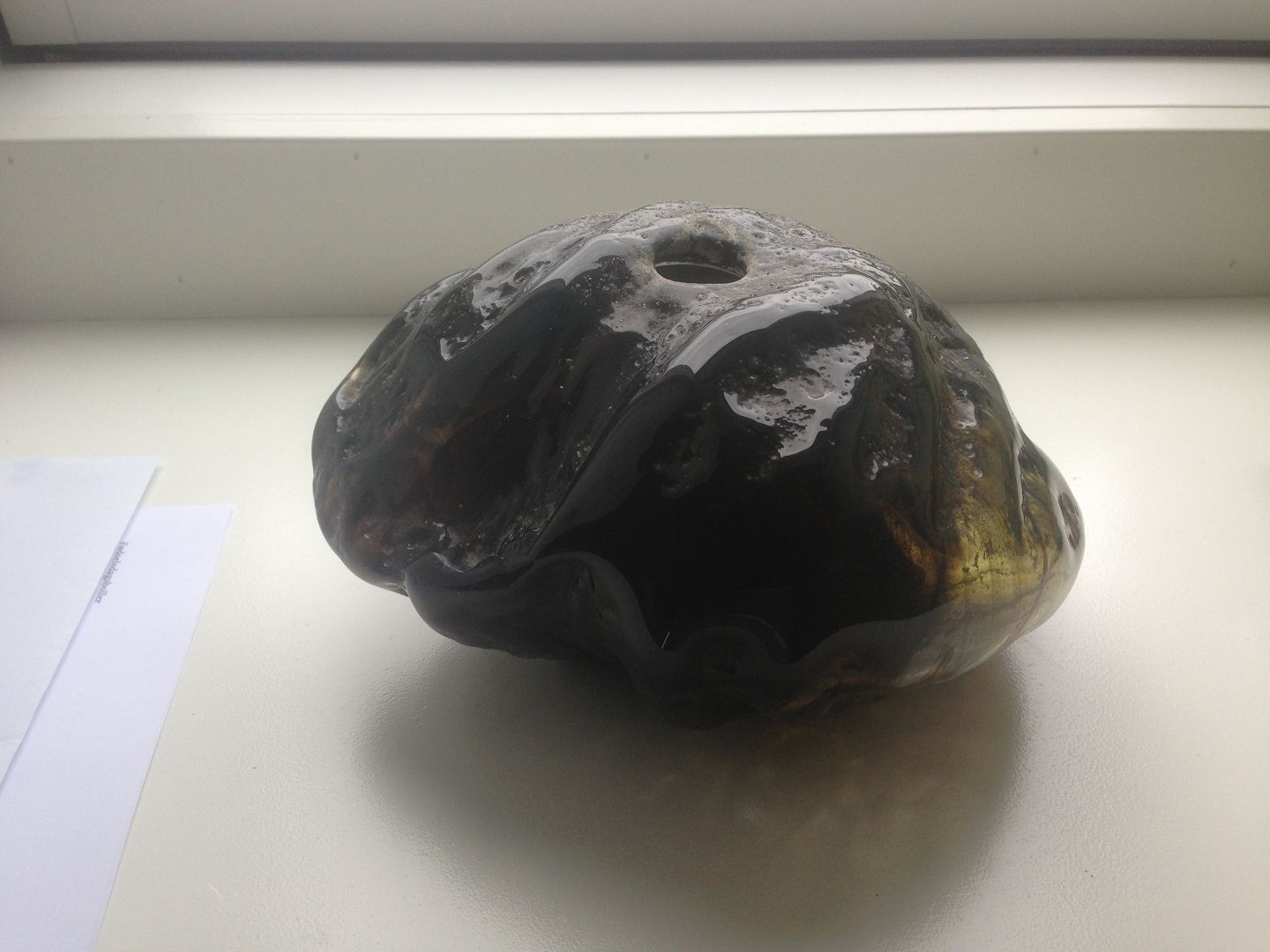 Unika Holmegaard vase/skulptur af Per Lutken No 52833. Måler 23cm lang og 13cm høj.