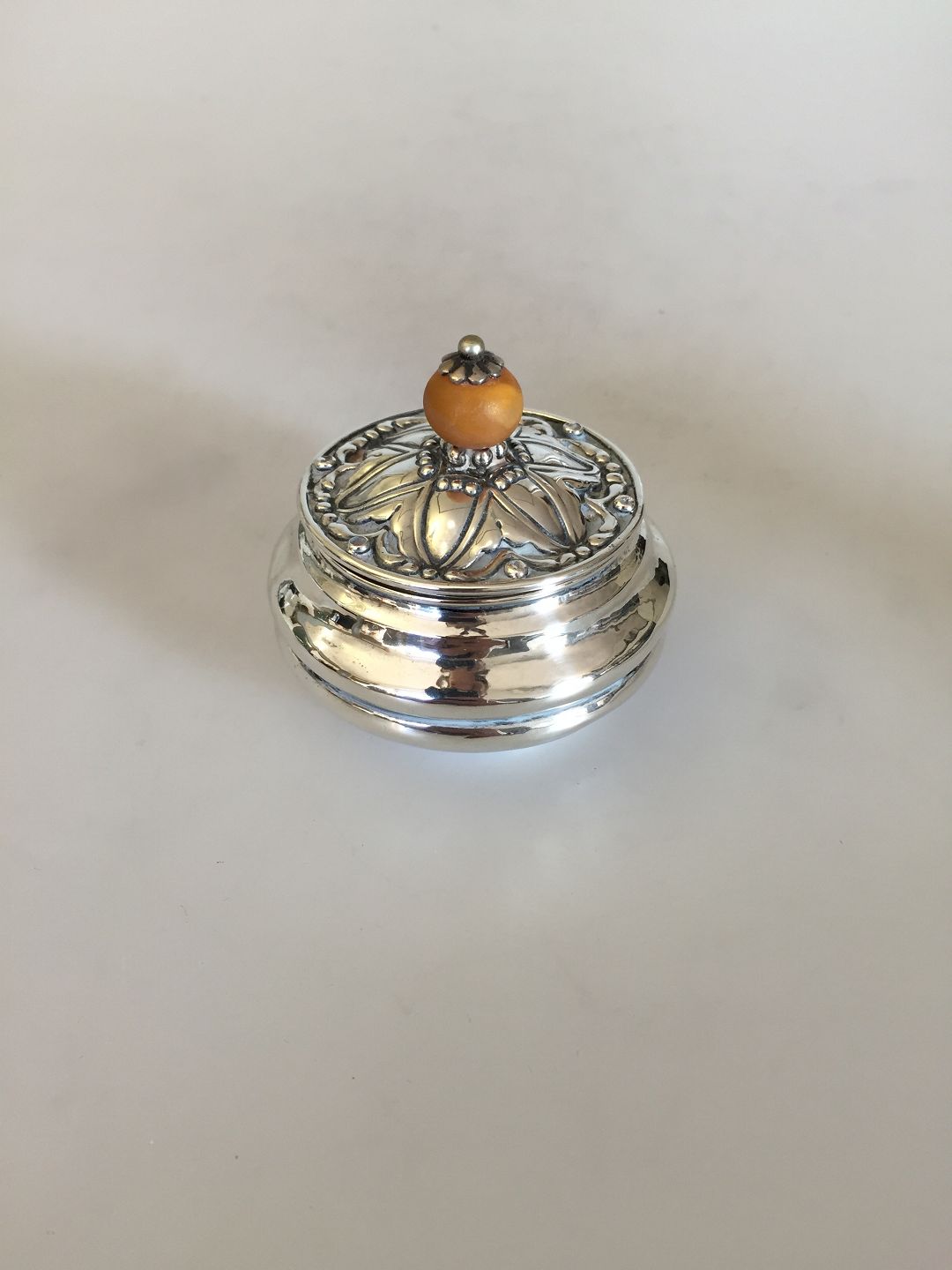 Kay Bojesen Silver Lidded box with Amber. Measures, 6cm high and 6,5cm dia. In good condition.