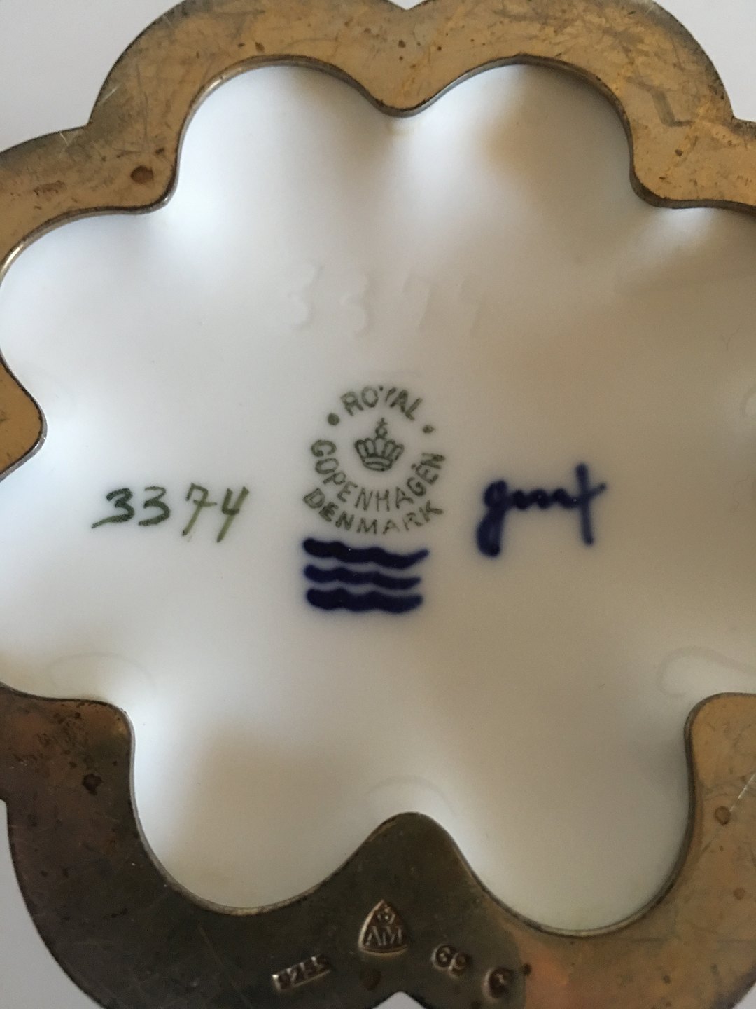 Royal Copenhagen Large Margrethe Cup with Sterling Silver mounting by Anton Michelsen.